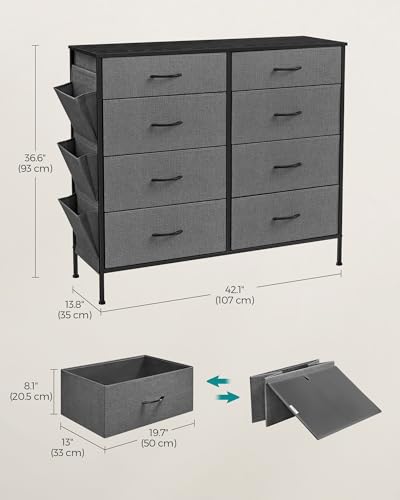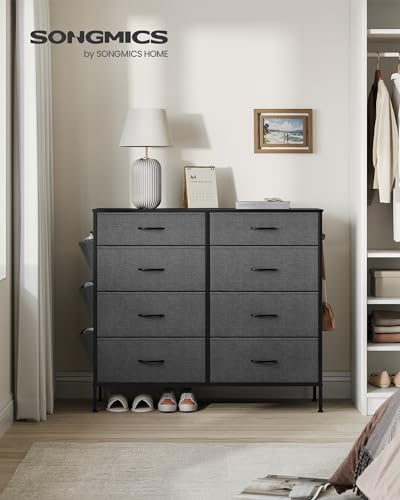 SONGMICS 8-Drawer Dresser for Bedroom, Chest of Drawers with Side Pockets, Drawer Dividers, Fabric Storage Organizer for Closet, 13.8 x 42.1 x 36.6 Inches, Charcoal Gray and Slate Gray ULTS824G22