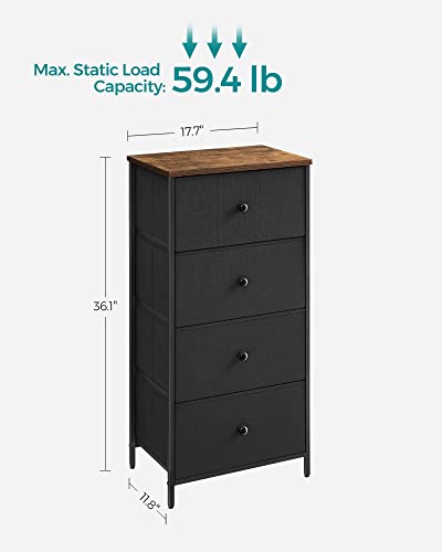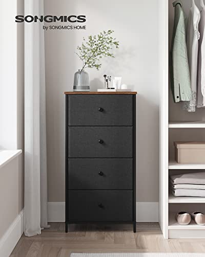 SONGMICS Dresser for Bedroom, Fabric Dresser with 4 Drawers, Metal Frame, Small Chest of Drawers, Ebony Black and Rustic Brown ULTS314B01