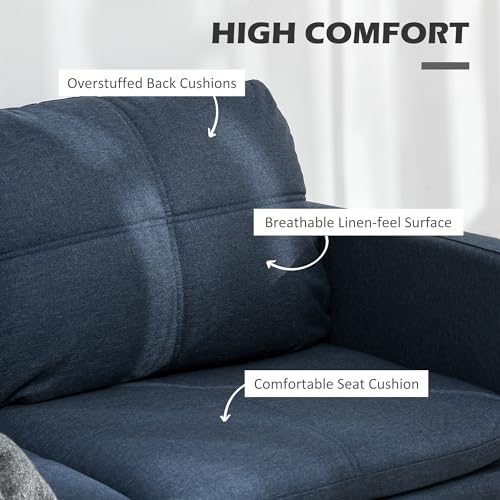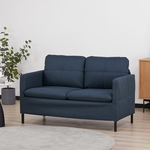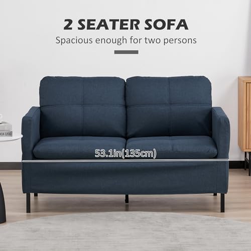 HOMCOM 53″ Loveseat Sofa for Bedroom, Modern Love Seats Furniture, Upholstered 2 Seater Couch with Steel Legs, Dark Blue