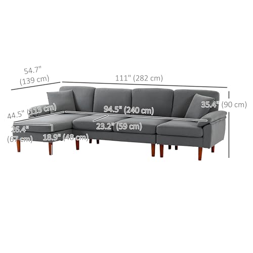HOMCOM Convertible Sectional Sofa with Reversible Chaise Lounge, Modern Sectional Couch with Pillows, Wooden Legs, L-Shape Corner Sofa for Living Room, Dark Grey