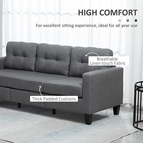 HOMCOM Corner Sofa, Chaise Lounge Furniture, 3 Seater Couch with Ottoman, L-Shaped Sofa with Thick Padded Cushion for Living Room, Office, Dark Grey
