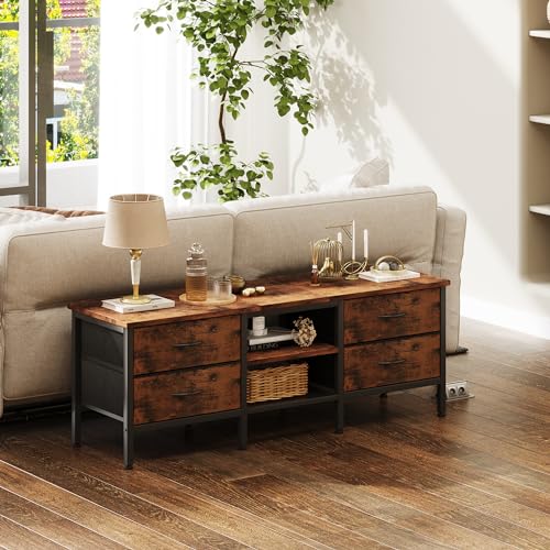 TV Stand with Storage-Drawers: This tv stand is equipped with 4 drawers to store books, mobile phones,DVDs, TV boxes and other small items. You can also place remote controls or other item that is of high frequency of use in the middle space.