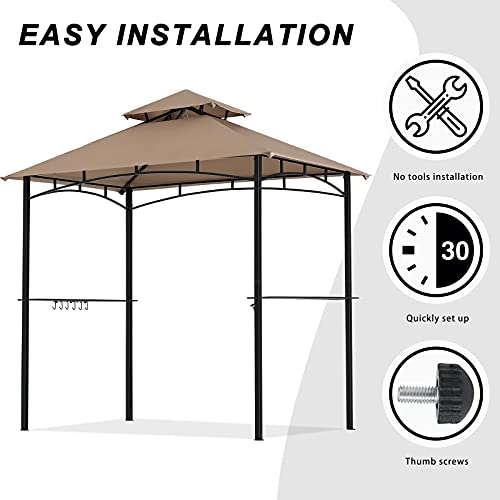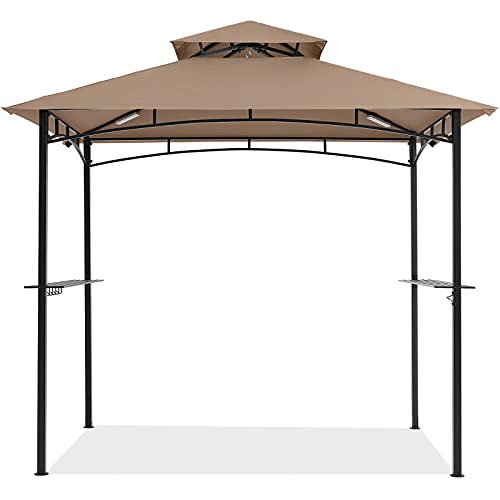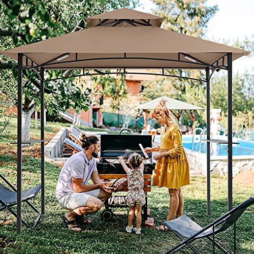 COOSHADE 8’x 5′ Grill Gazebo Double Tiered Outdoor BBQ Gazebo Canopy with LED Light (Khaki)