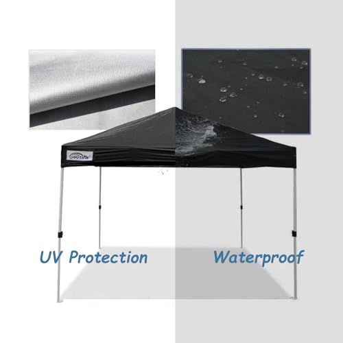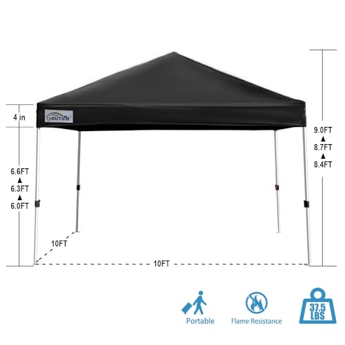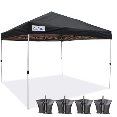 Goutime 10x10Ft (3m*3m) Ez Pop Up Canopy Tent Gazebo Portable Foldable Instant Shelter with Wheeled Carry Bag, Bonus 4 Canopy Weight Sand Bags,Events Beach Market Waterproof Black
