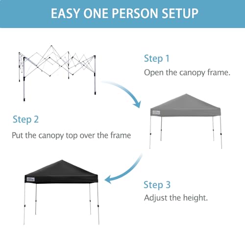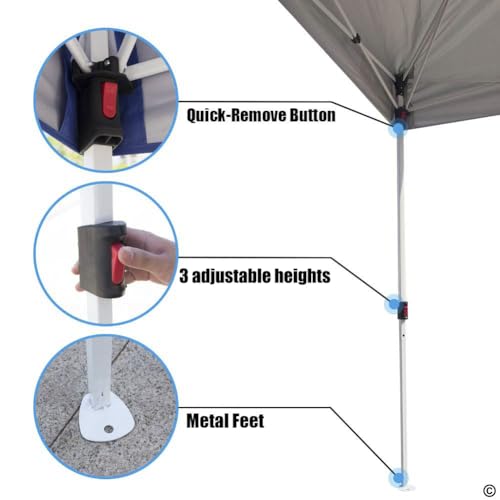 ③ EASY TO SET UP – With finger friendly quick lock release button, the fully assembled frame can be set up in seconds, no tools required, multiple height options available, provides up to 100 square feet of shade and shelter. Ideal for commercial or recreational use, such as outdoor events, street markets, camping, picnics, parties, and sporting events