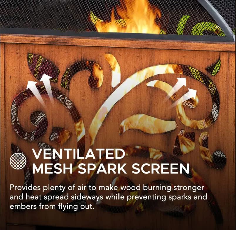 VENTILATED MESH DESIGN: The ventilated mesh design, coupled with the large spark screen on the inside of the grill, promotes strong wood burning and effective heat distribution. It also prevents sparks and embers from escaping, ensuring safety.