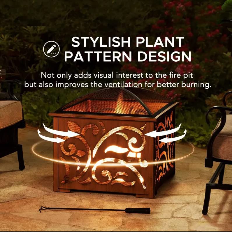 Cusiland Large Heavy Duty Outdoor 26 in. Fire Pit for Outside, Patio Square Wood Burning Extra Deep Firepits with Spark Screen and Poker Copper
