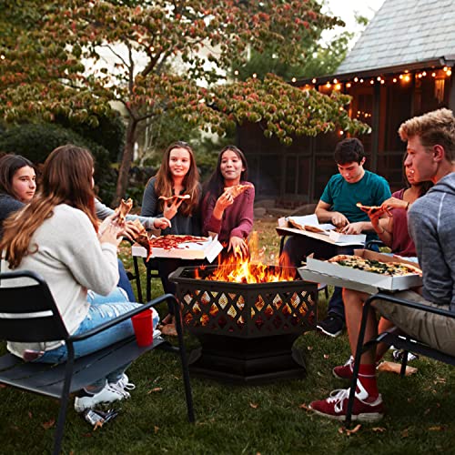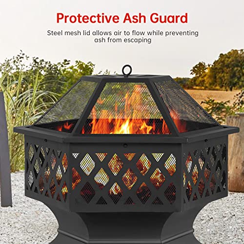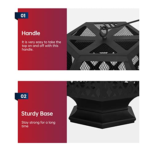 ✨『LARGE CAPACITY』: This Fire Pits features a protective fire screen lid to prevent sparks and burning embers from escaping. Fire bowl also comes with a handy tool to poke wood or easily remove the mesh lid safely. Sturdy legs ensure stability and support of the wood-burning fire pit.