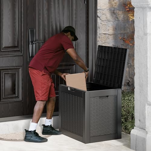 LHBGO 31 Gallon Package delivery box, Deck Box, Resin Outdoor Storage Box, Waterproof and UV Resistant Lightweight Storage Deck Box for Garden Tools, Pool Supplies