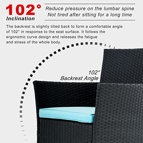 ✿【Sturdy and Durable】Our outdoor patio sets is made of powder-coated steel frames.It is durable enough to withstand rain and wind for long time using. The cushions are designed with zippers, it can be washed or replaced. The rattan chair sets use PE rattan which is smooth and burr-free, waterproof and sun protection.