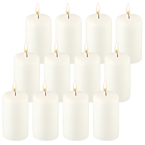 12 Pack Ivory Pillar Candles, Unscented Candles Tall Votive Candle Paraffin Wax Long Lasting Candles Clean Burning Candles for Home Decor Wedding Party Dinner Bath Spa (2 x 3 Inch)