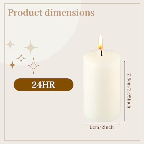 Extended Burn Time: our ivory candles not only burn cleanly, but also for an extended time of up to 24 hours: Each candle measures about 2x 3 inches/ 5 x 7.5 cm, which makes them ideal for adding warm ambiance to your home.