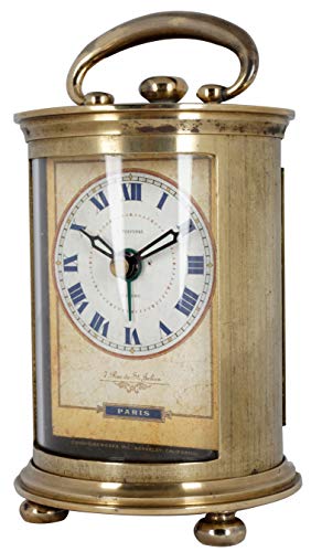 JUSTIME Solid Brass Parisian Carrige Antique Collectible Analog Table Desk Alarm Clock for Gift, Home Decor, Battery Operated (Large)