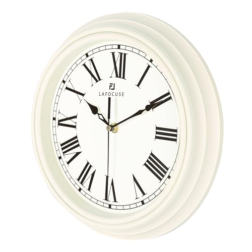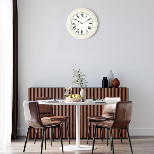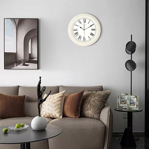 Lafocuse Silent Cream Wall Clock for Home Decor 12 Inch, Horloge Murale Modern Retro Kitchen Wall Clock with Roman Numerals Living Room Bedroom Office-Version 2.0