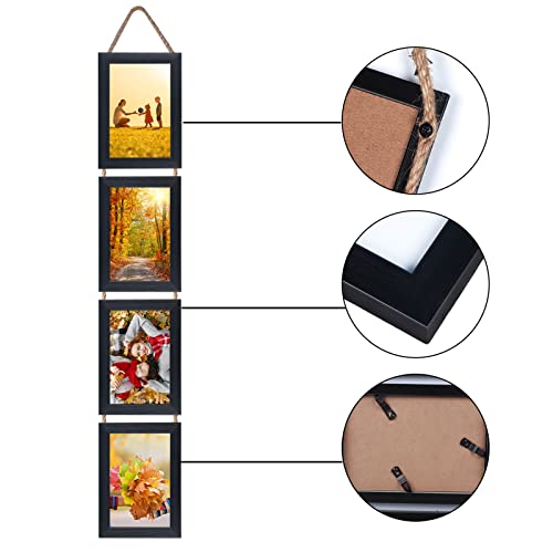 Lavezee 4×6 Black Hanging Collage Picture Frames Set of 2, 8 Opening Vertical Frame Made to Display 4 by 6 Inch Photo for Wall Decor