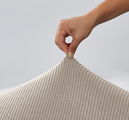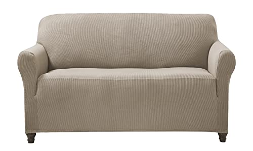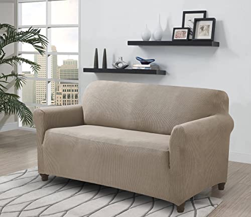 Home Beyond & HB design – Stretch Sofa Covers Slipcovers 2 Seater – Spandex Jacquard Fabric Couch Sofa Cover with Elastic Bottom – Furniture Protectors – (Loveseat 57-70 Inches Wide, Stripe Sand)