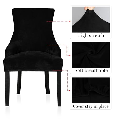 Lellen Velvet Stretch Wingback Chair Cover Slipcover – Reusable Arm Chair Protector Cover for Dining Room Banquet Home Decor etc Machine Washable Hand Washable (Black, 4pcs)