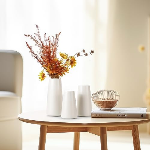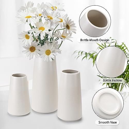 3Pcs White Ceramic Vases Set for Home Decor, Minimalism Modern Flower Vase for Table Centerpieces Living Room Fireplace Bedroom Kitchen Office Decoration.