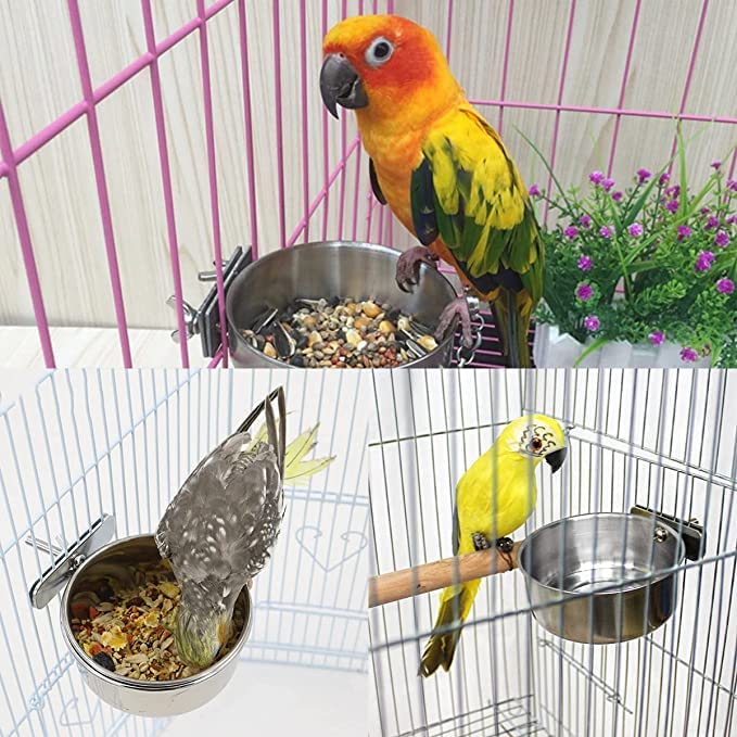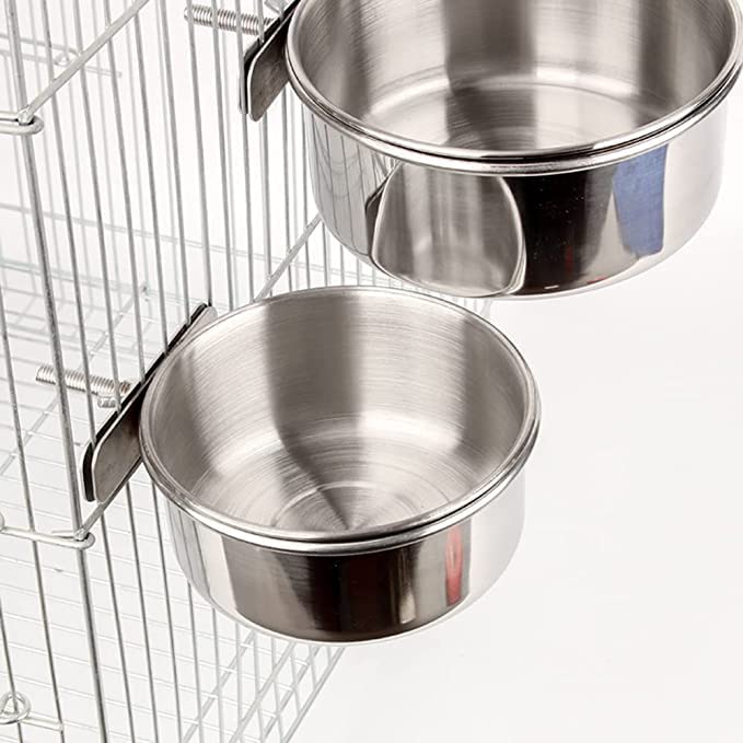 【Feeding Food & Water】This stainless steel parrot cage dish feeder can be used to contain food or water for your lovely parrot.