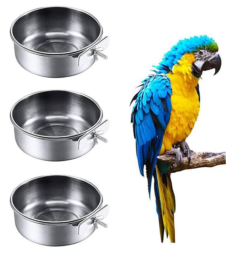 3 Pack Bird Feeding Dish Cups Bird Cup Stainless Steel Bird Feeder Bowls with Clamp Holder for Parrot Cockatiel Conure Budgies Parakeet Lovebird Chinchilla (3)