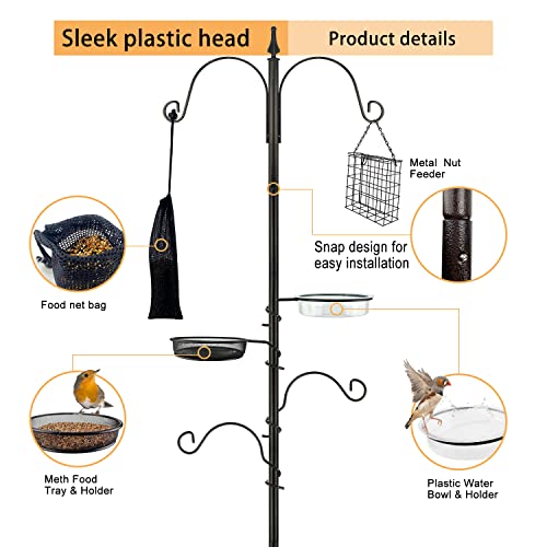 High-quality materials – The prismatic base that can be inserted deep into the grass keeps the bird feeder stable even when the breeze blows through, and the black powder-coated steel makes the bird feeder Stand rainproof and rustproof for added durability to last for years.
