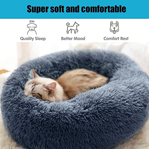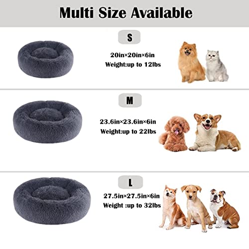 MEHONGCAN Calming Small Dog Cat Bed,Anti-Anxiety Round Pet Bed,Machine Washable Fluffy Luxury with Slip-Resistant Bottom for Small Medium Dogs Cats. (S 20″ Lx20 Wx6 H, Dark Grey)