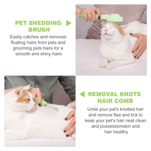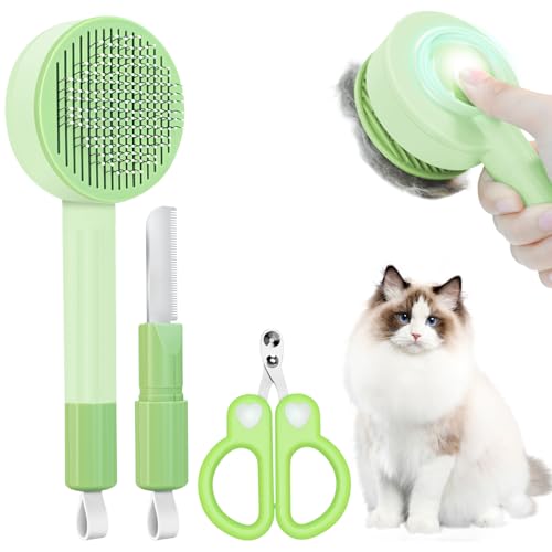 Cat Hair Brush for Deshedding, 3 in 1 Pet Hair Removal Comb Grooming Kit with Nail Clippers & Hair Knots Removal Comb, Pet Self Cleaning Slicker Brush for Long Short Haired Cats Dogs Kitten (Green)