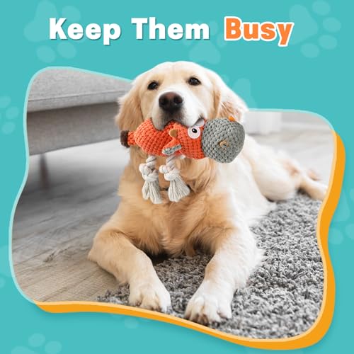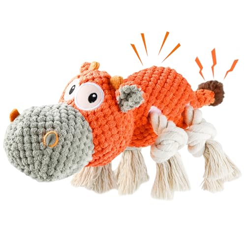 Tooptate Dog Toys for Aggressive Chewers – Squeaky Dog Toys to Keep Them Busy Tough Plush Dog Toys for Large, Medium, Small Dogs – Orange