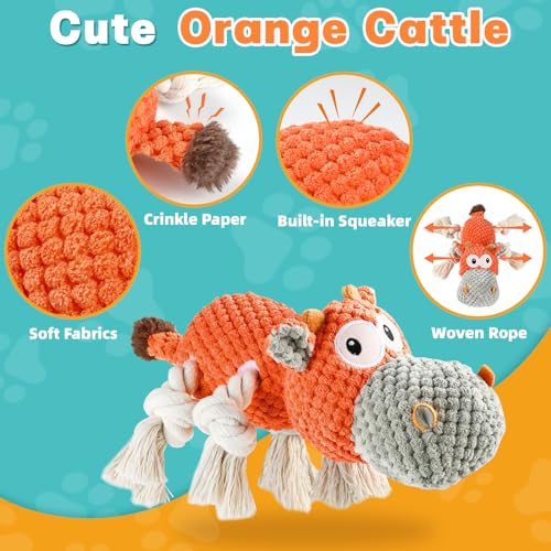 【Keep Them Busy】Our squeaky dog toys are packed with large squeaker in the body and crinkle paper inside the cattle’s tail, made to make noices and attract your dogs. Your furry friends will enjoy finding the source of the squeaking and reduce their boredom, which can entertain your curious dogs. These fun interactive toys are perfect products to keep them busy.