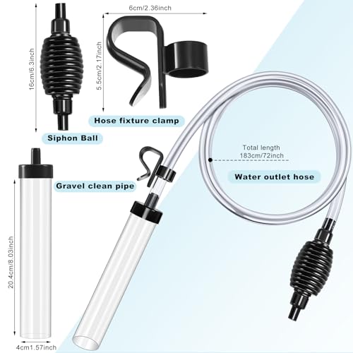 Package Includes: you will receive 2 pieces of aquarium siphon gravel cleaner, including 2 pieces of 6 ft water outlet hose, 2 pieces of sand cleaning tube, 2 pieces of hose fixture clamp, 2 pieces of siphon ball, suitable length and enough quantity to meet your needs and replacements, and you can also share with your friends or colleagues