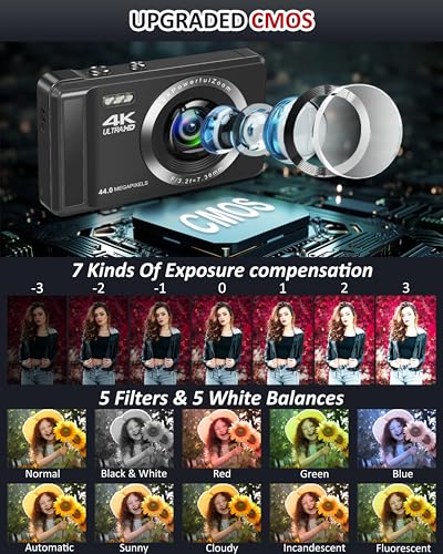 【4K UHD & 44MP】This digital camera capture stunning 44-megapixel images and shoot in 4K video with vivid colors and sharp details. Elevate your photography with a range of built-in filters for a unique creative experience.