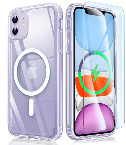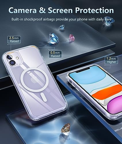 FNTCASE for iPhone 11 Case Clear: Support Magnetic Charging Military Grade Drop Protection Anti Yellowing Cell Phone Cover – Rugged Durable Shockproof Protective Bumper – 6.1 Inch