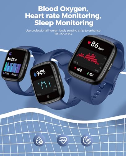 Smart-Watch-with-Alexa-Built-in, 100+ Fitness Tracker Smartwatch, IP68 Waterproof, Health Monitor for Heart Rate, Sleep, 24/7 Blood Oxygen & Stress, Smart Watch for Android and iPhone, Blue