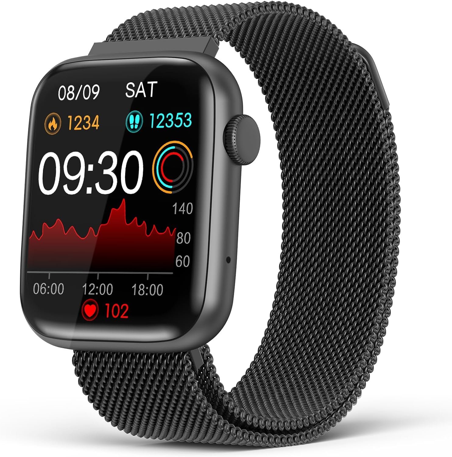 🎁【Hands-Free Bluetooth Calls and AI Voice Control】- With advanced Bluetooth 5.0, our smartwatch is equipped with a high-fidelity waterproof speaker and microphone, allowing you to easily make and answer calls while doing housework, running, cycling, or playing. Our exclusive AI voice algorithm allows you to double-click and wake up the voice assistant, completely freeing your hands and allowing you to operate the watch through voice commands.