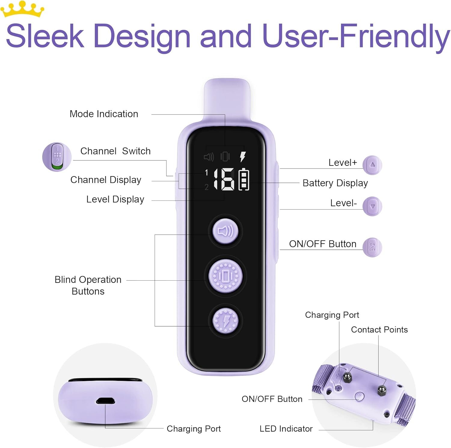 Bousnic Shock Collar for Dogs – Waterproof Rechargeable Dog Electric Training Collar with Remote for Small Medium Large Dogs with Beep, Vibration, Safe Shock Modes (8-120 Lbs) (Purple)
