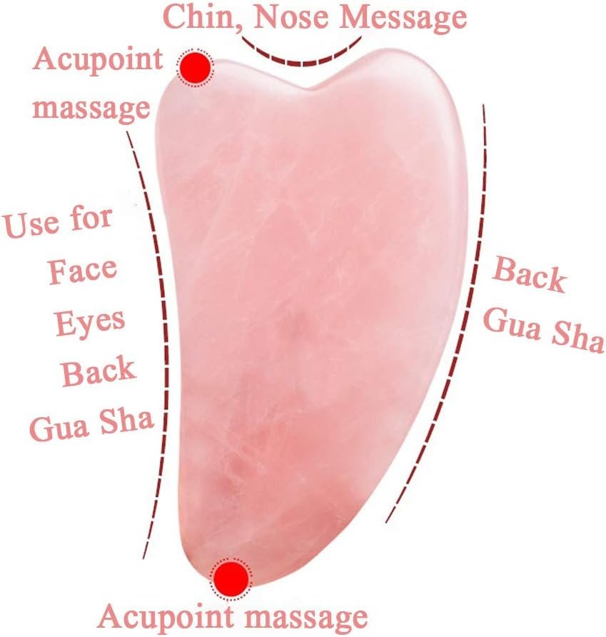 Natural Rose Quartz Material: This Gua Sha facial massage tool is made from high-quality natural rose quartz, providing a gentle yet effective skincare experience suitable for all skin types, enhancing your skin’s radiance