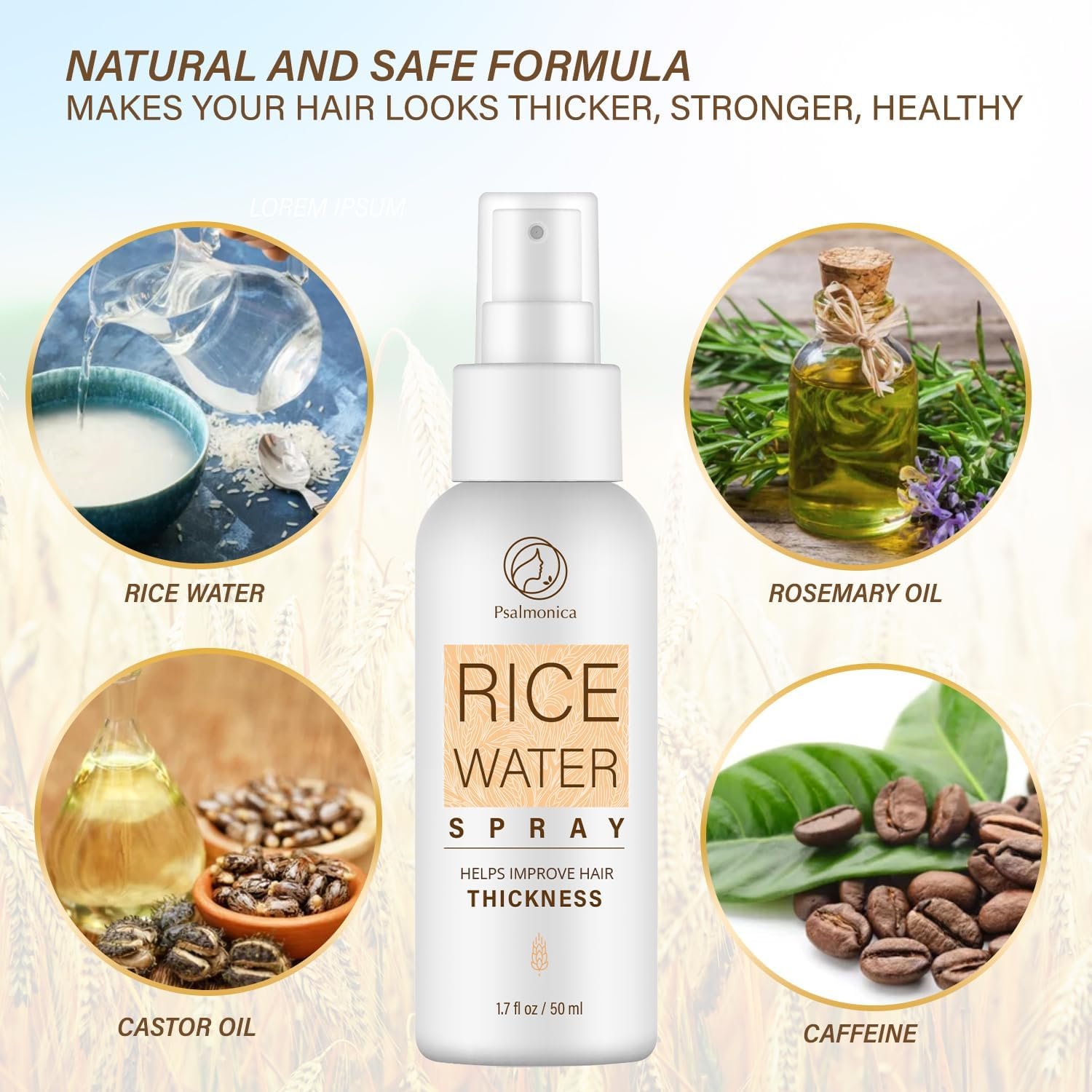 Hair Oil: Rice Water with Rosemary Caffeine Biotin Castor Oil – Hair Serum for Thickness Stronger Healthy Hairs for Women Men (Travel Size – 50ml)