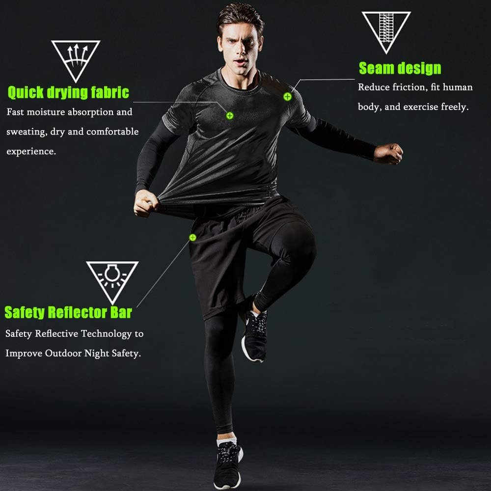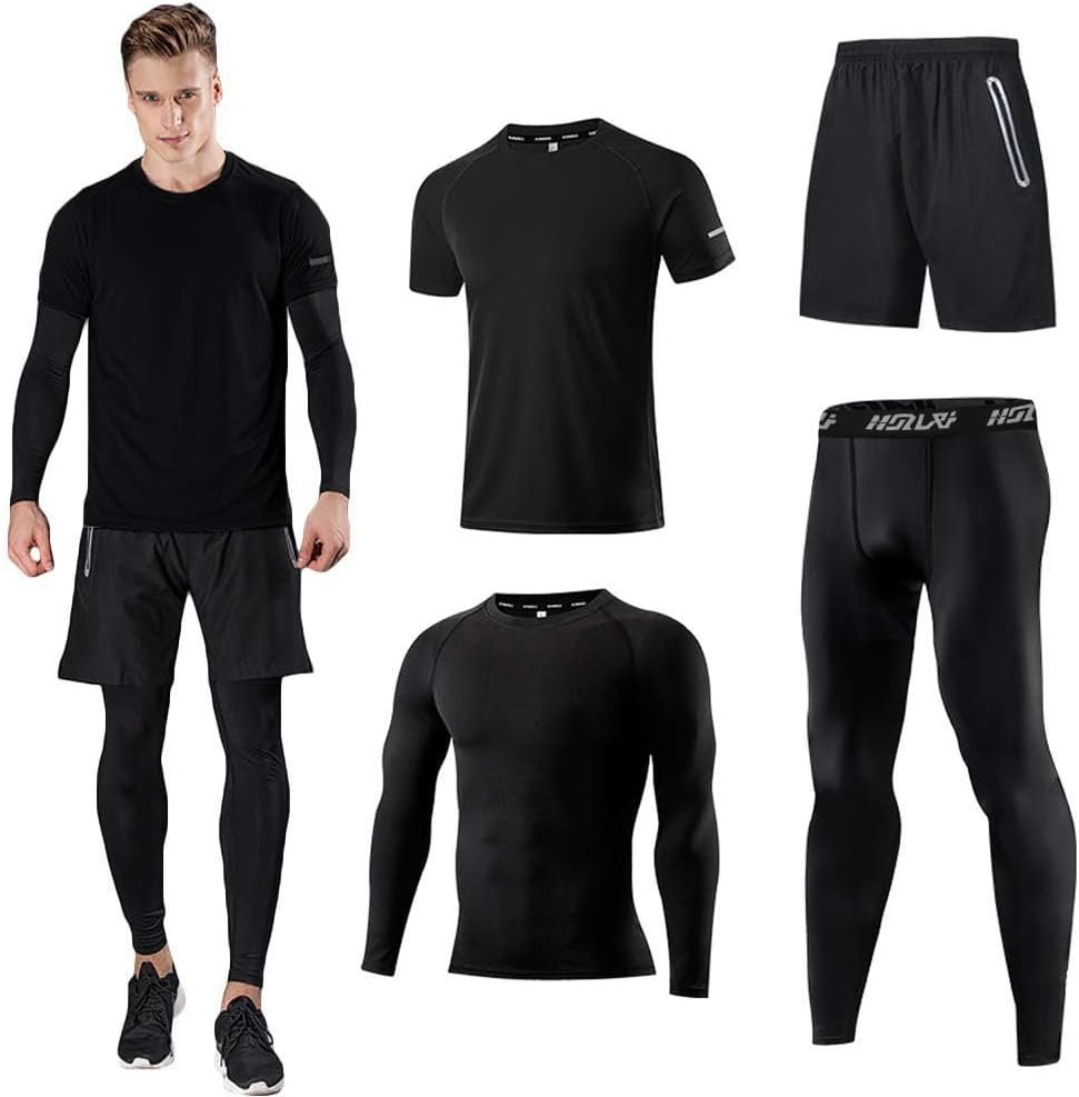 Holure Men’s Sports Running Set (Pack of 4 or 5) Athletic Shirt+Short/Compression Shirt+Pants with Coat Tracksuit Gym Suits