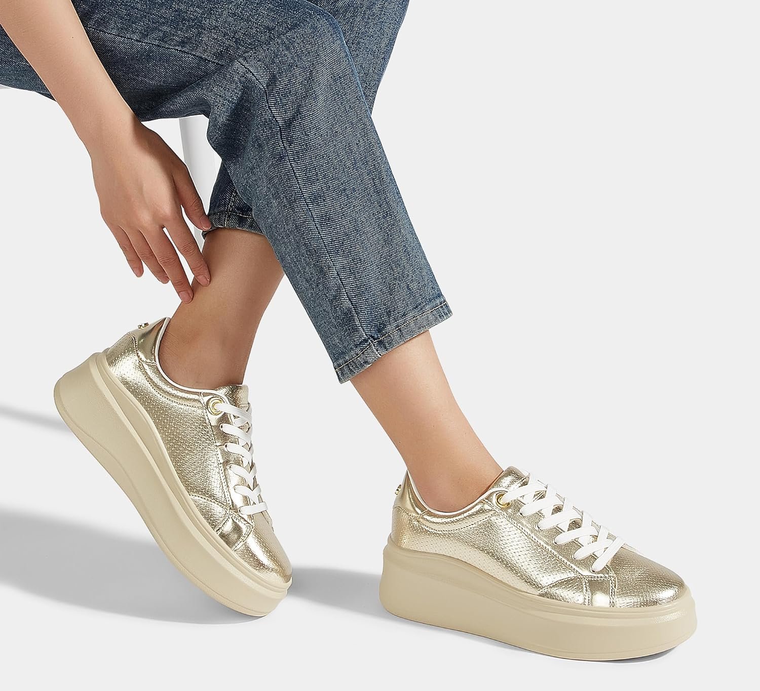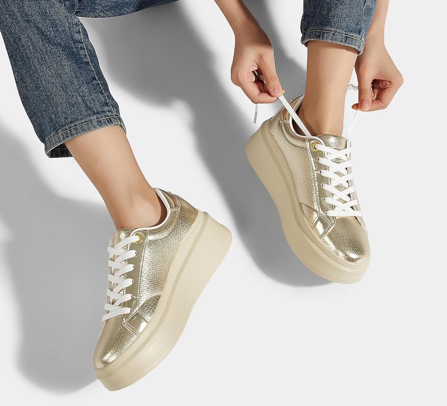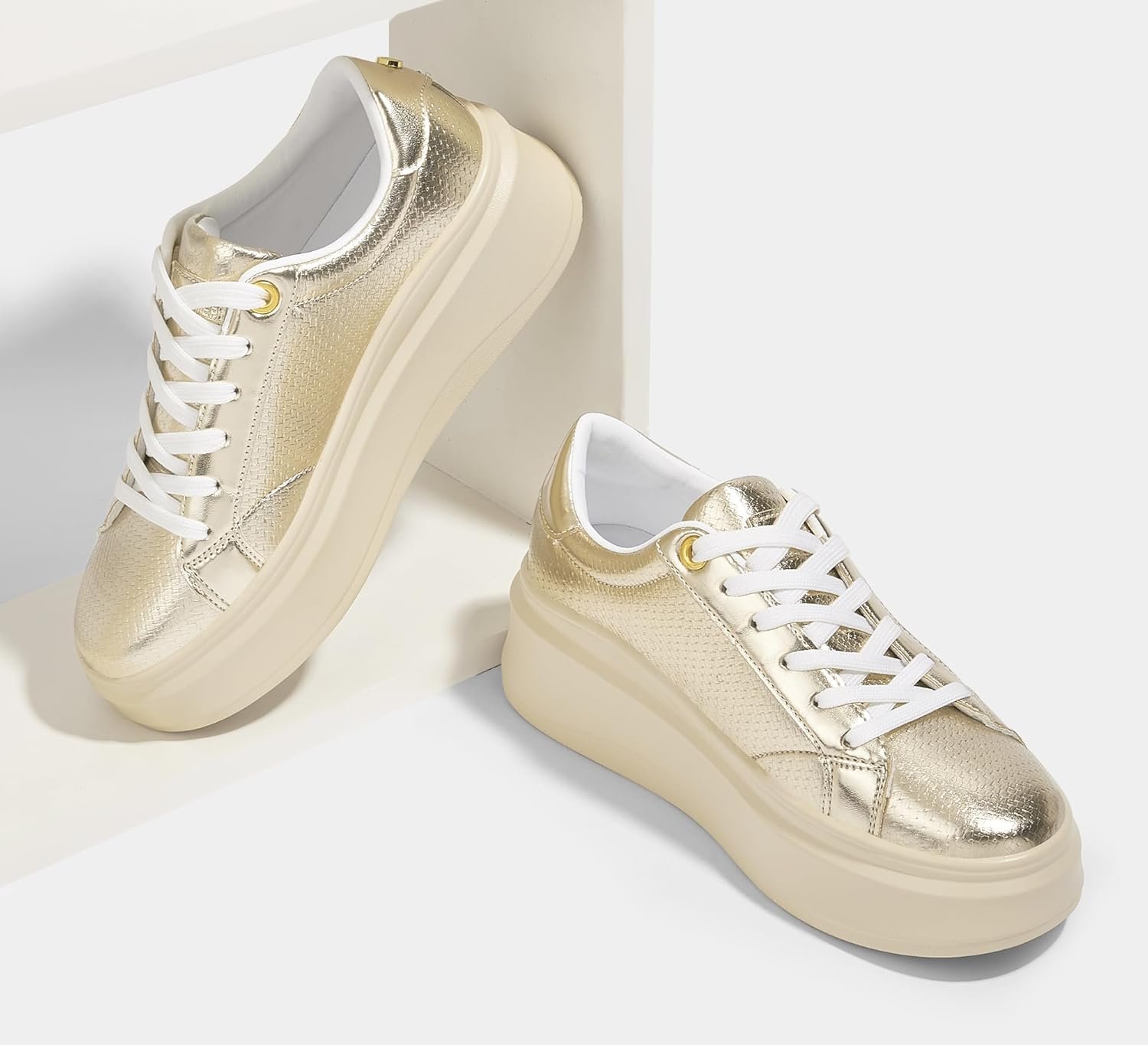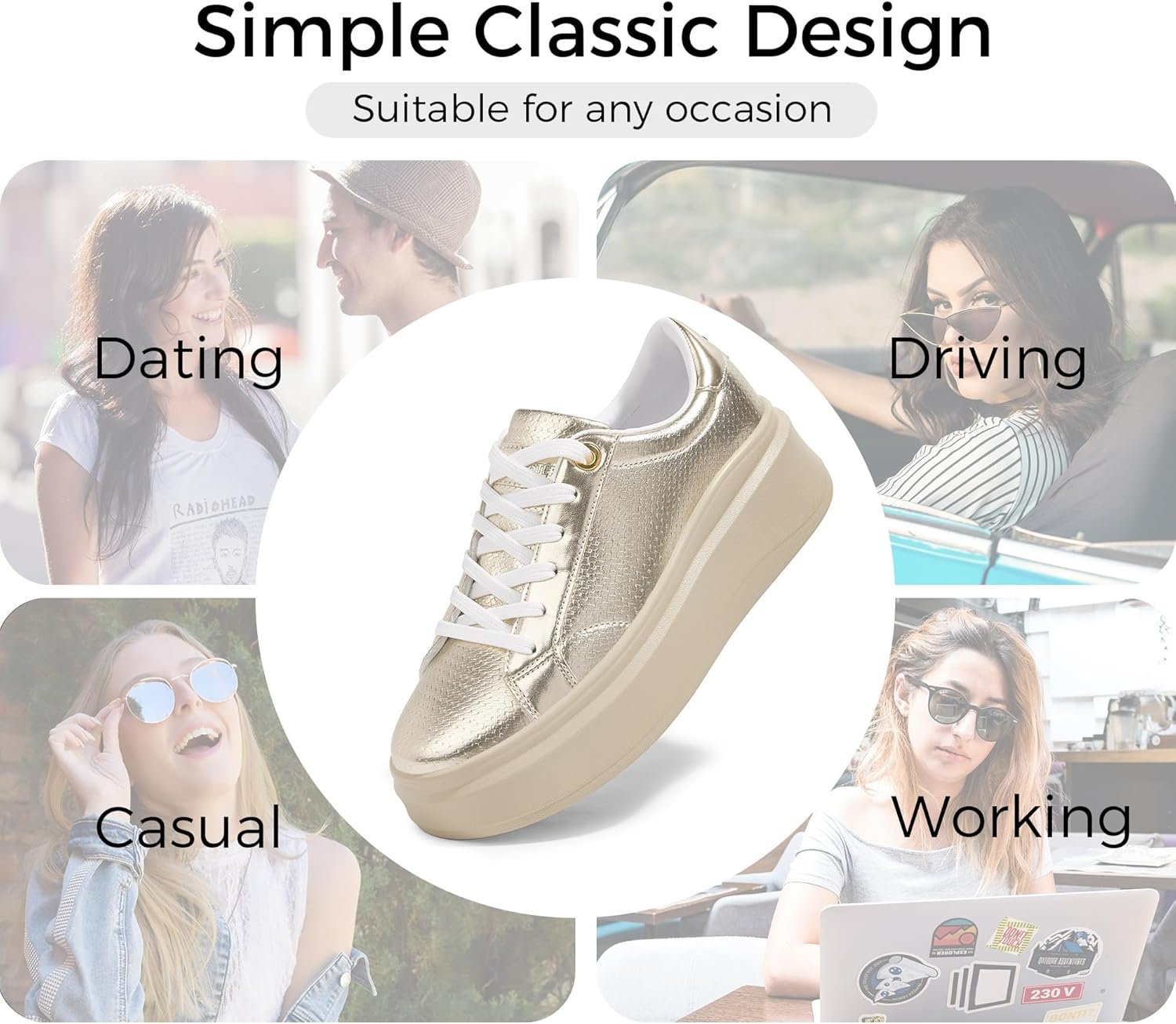LUCKY STEP Women’s Platform Fashion Sneakers Faux Leather Classic Tennis Shoes Low Top Casual Walking Shoes