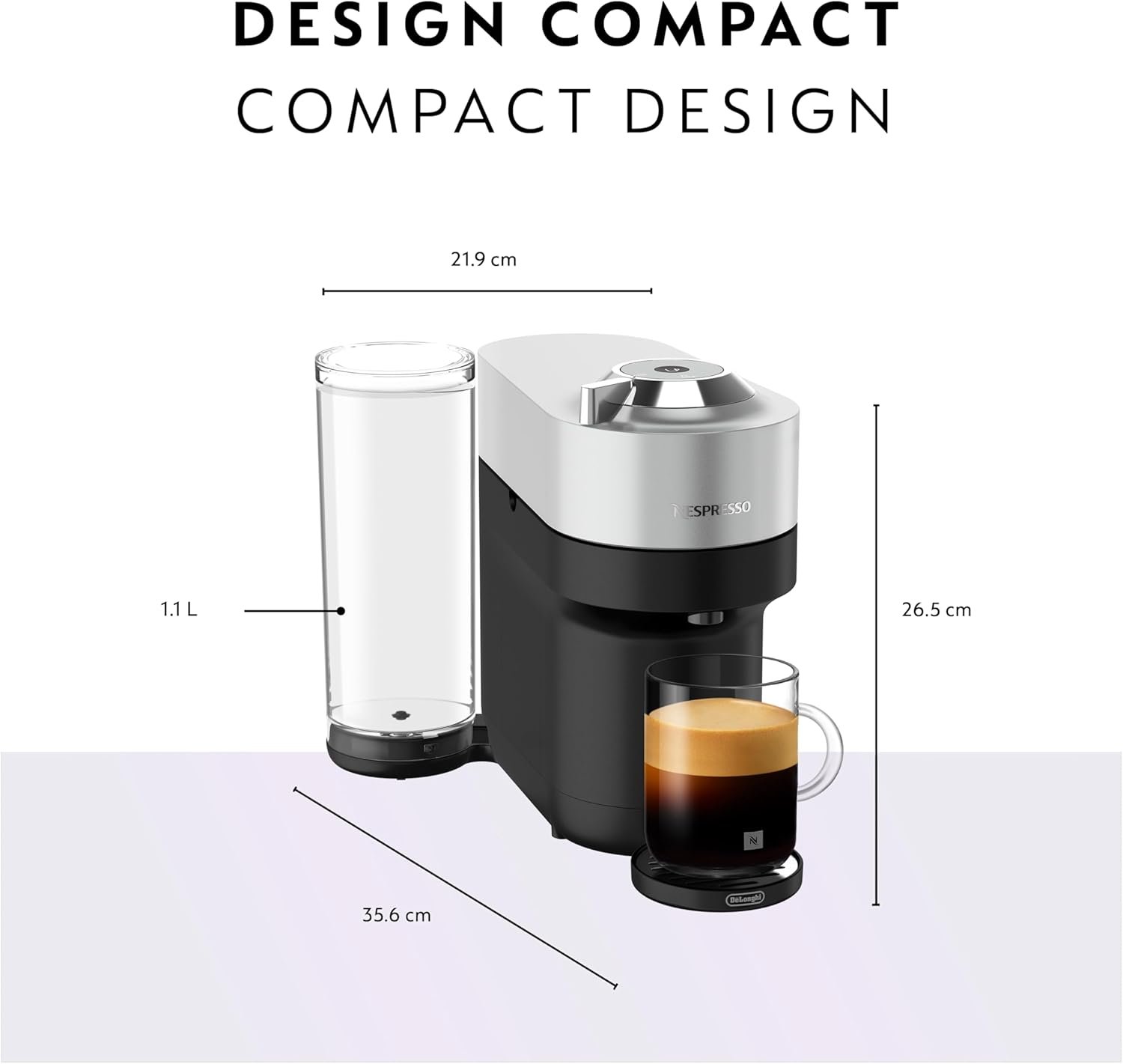 Versatile machine offering 6 coffee sizes (Ristretto, Espresso, Double Espresso, Gran Lungo, Mug/Coffee, Alto & Cold Brew style coffee)