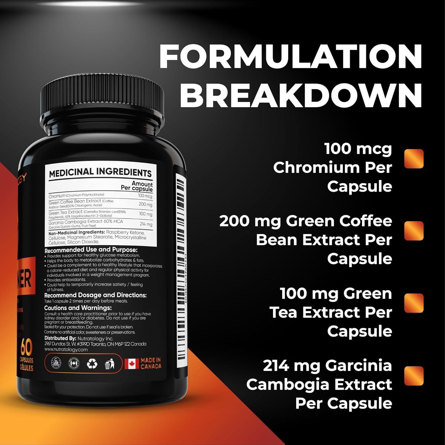 Proudly Made In Canada – Manufactured in a GMP certified facility right here in Ontario, Canada. Nutratology’s unwavering focus on quality means we also ensure all of our products go through rigorous third party lab testing to ensure quality, potency & safety in every batch!