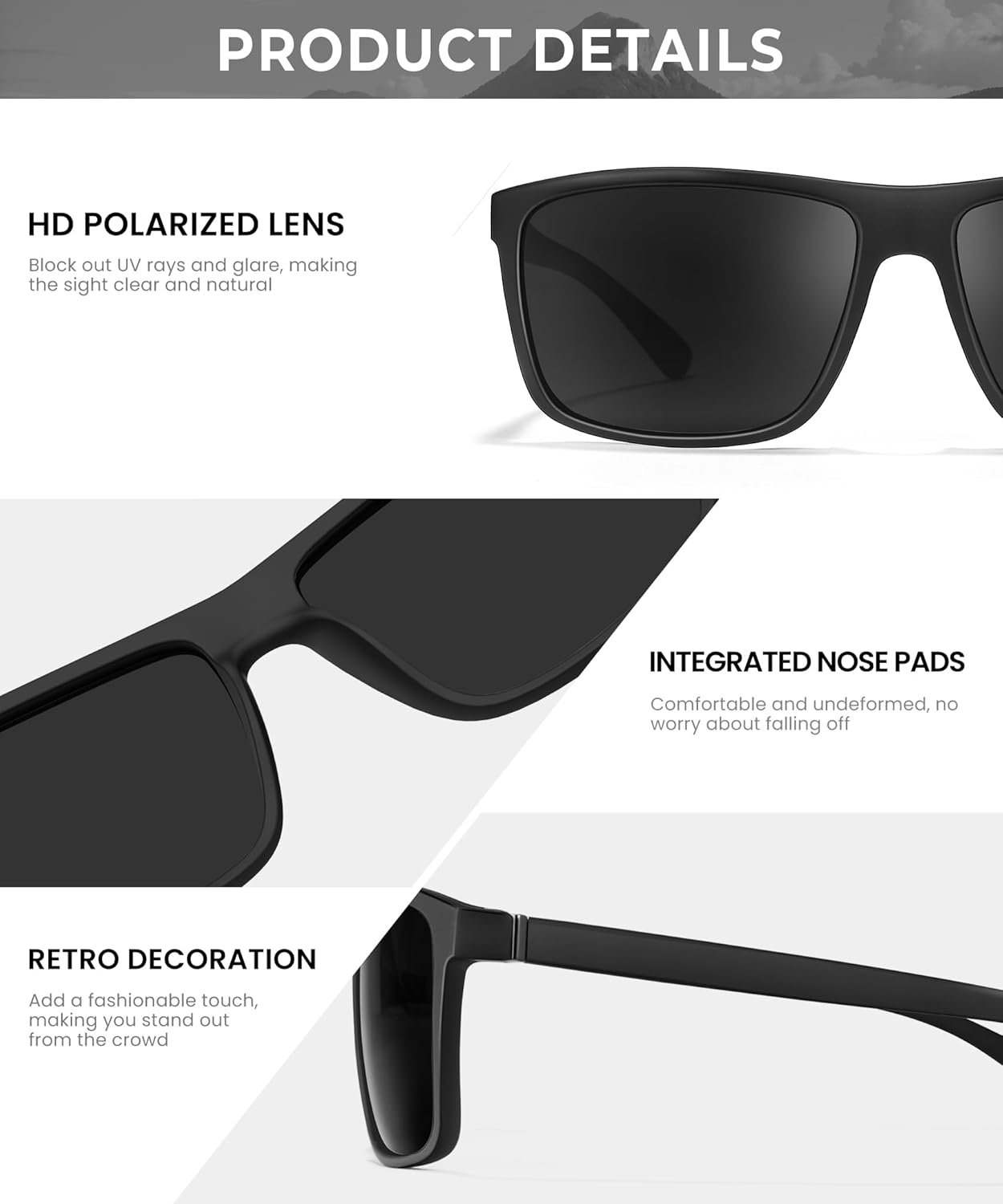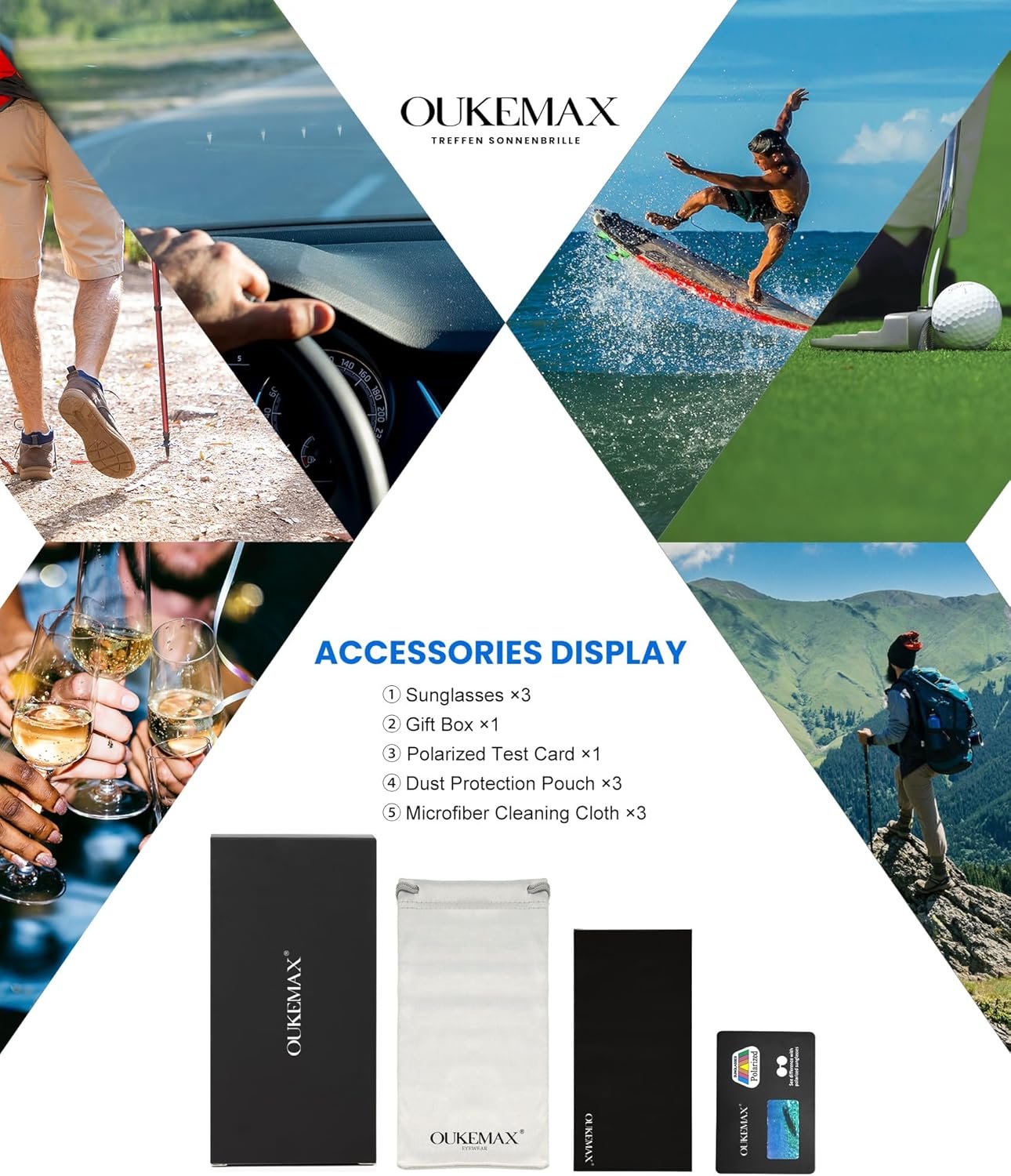 High Definition Polarized Lenses:OUKEMAX men’s sunglasses are made with advanced polarization technology, which significantly reduces glare, blocks uv rays and improves visual contrast, providing clear vision and reducing eyestrain.Premium Quality Material:ladies sunglasses are made of durable and lightweight material for long-lasting durability. Lenses are scratch resistant and shatter resistant to protect your eyes. Frames are made of lightweight and durable materials to withstand extended use.Classic Rectangle Design: The mens polarized sunglasses feature a classic rectangle design for a sleek and modern style. The frames are lightweight and comfortable, making them ideal for all-day wear. Whether you’re dressed up for a formal occasion or enjoying a relaxing day at the beach, these men sunglasses polarized will complement any outfit.Wide Application: The wrap around sunglasses are suitable for all occasions and the unisex design ensures that they look good on everyone. Whether you’re driving, hiking or lounging by the pool, these sunglasses polarized will give you the protection and clear vision you need.Gift Box and Branded Customer Service: The sun glasses for men come with beautiful gift packaging, including classic men’s polarized sunglasses*3, microfiber pouch*3, microfiber lens cleaning cloth*3 and a gift box*1. All OUKEMAX customers are entitled to the brand service we provide. The quality of each box and lens is double-checked, and we provide lifetime after-sales support.