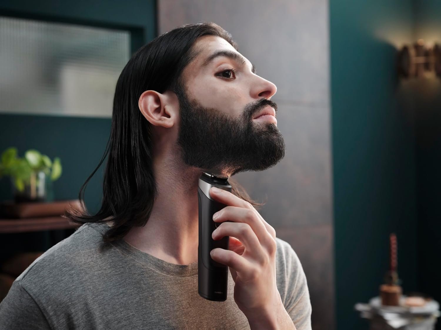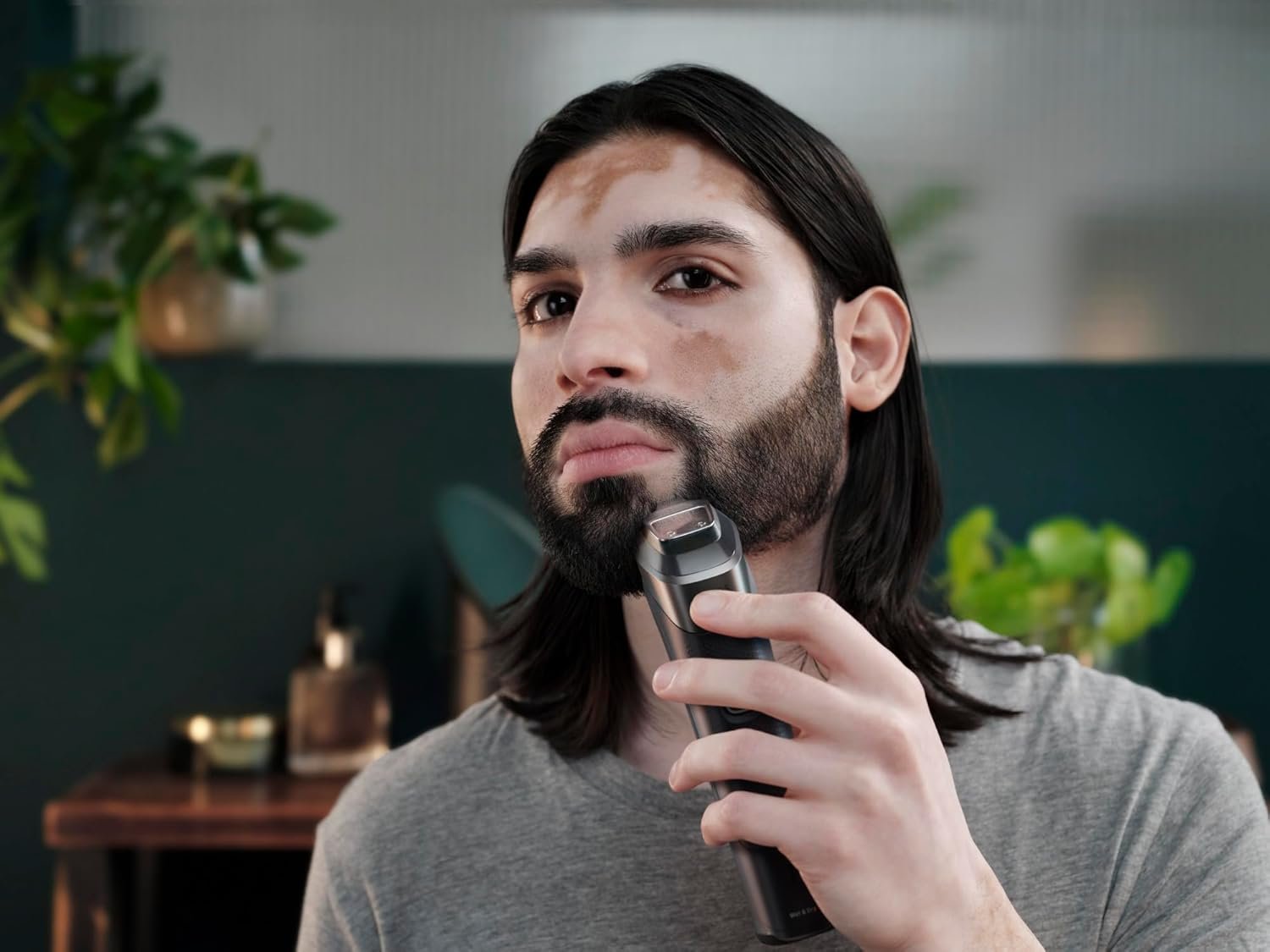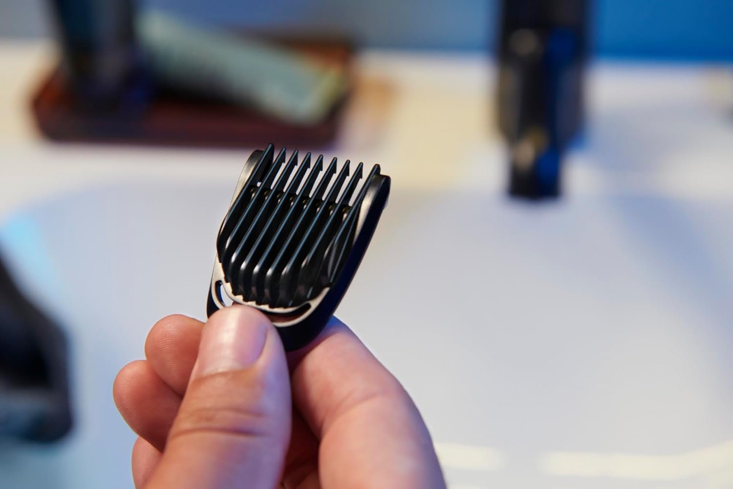 Beard trimmer for men with innovative Lift & Trim system: a comb that lifts and guides the hair towards the blade for an even, precise and efficient trim
