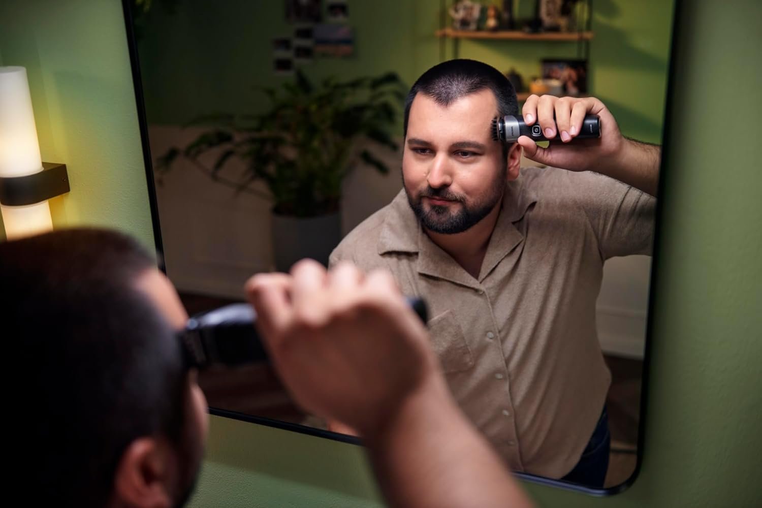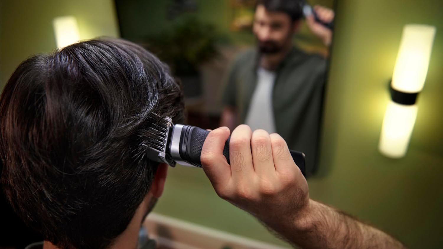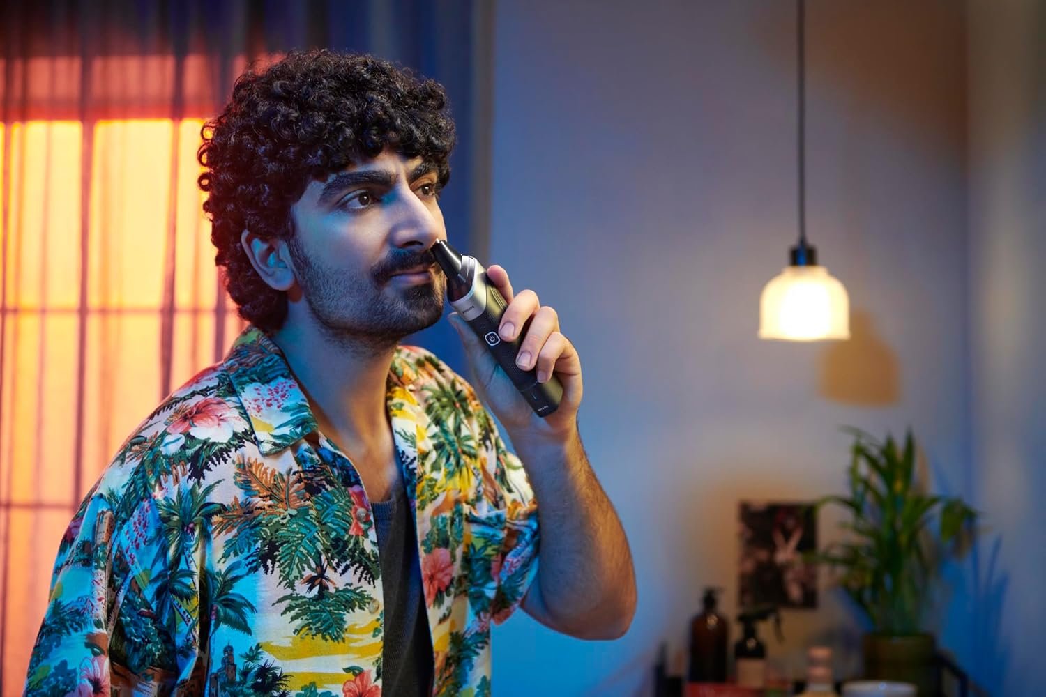 Beard trimmer for men with innovative Lift & Trim system: a comb that lifts and guides the hair towards the blade for an even, precise and efficient trim