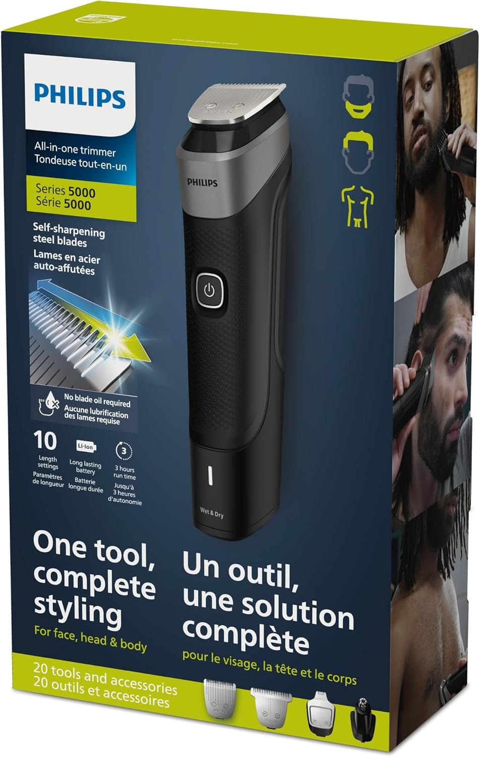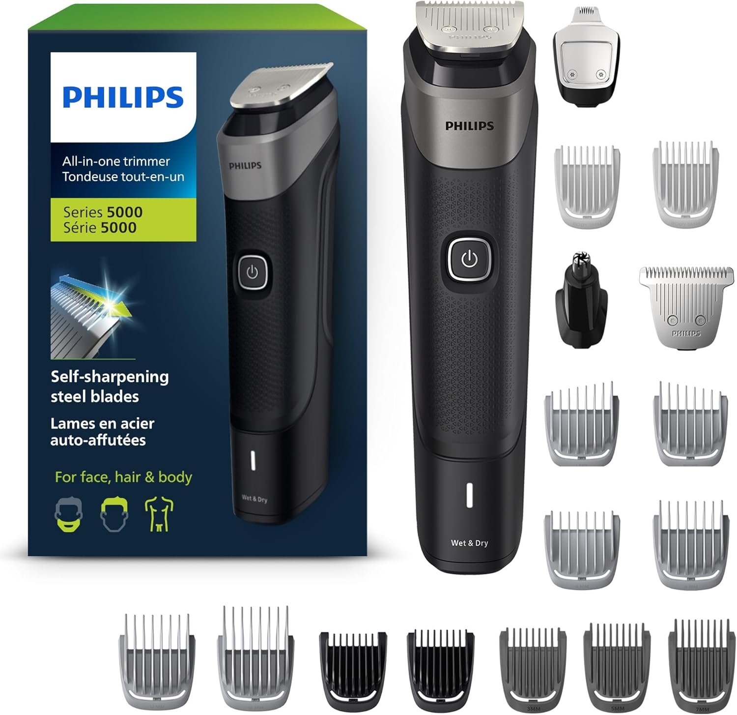 Philips Multi Groomer All-in-One Trimmer Series 5000, Mens Grooming Kit with Trimmer for Beard, Head, Hair, Body, Groin, Nose and Face, NO Blade Oil Needed, MG5910/28