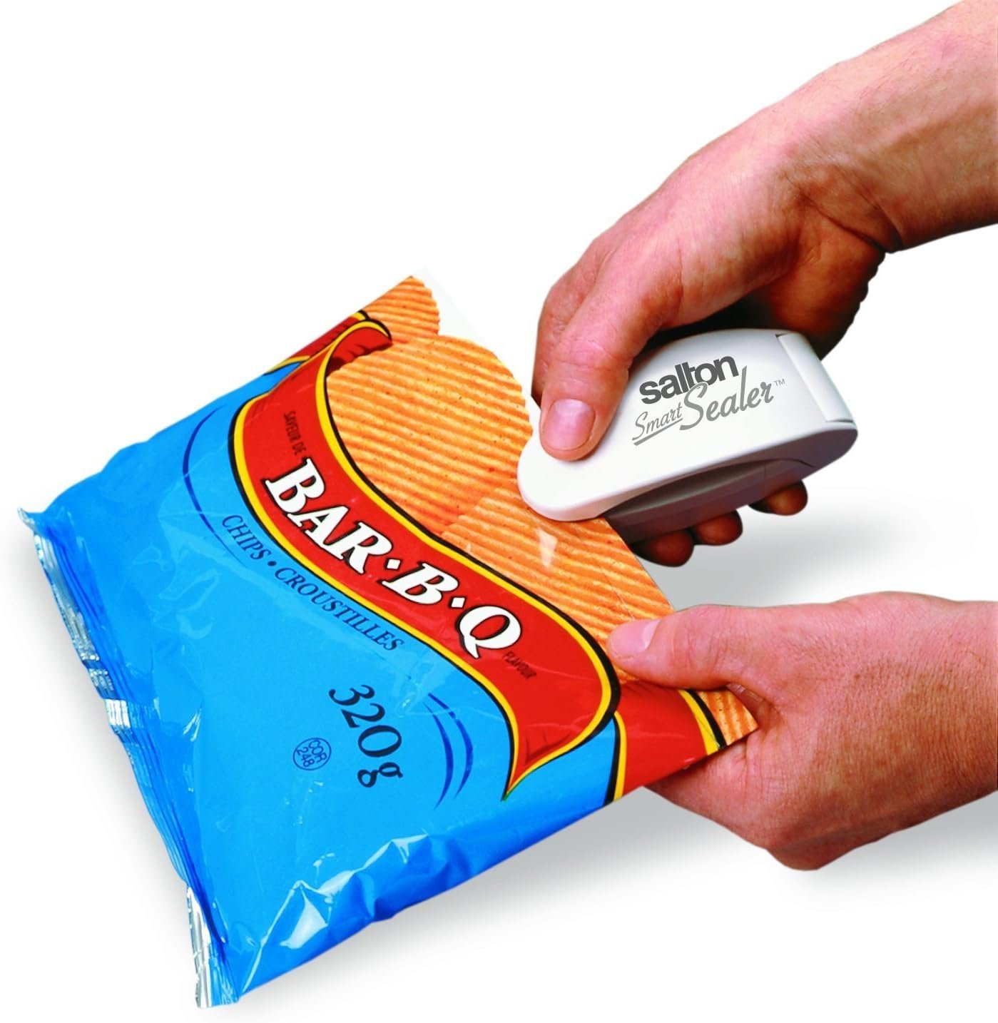 Salton SmartSealer 2-in-1 Bag Sealer and Cutter for Chip Bags, Reseal and Cut Food Storage Snack Bags, Handheld and Portable, White (BS1442)