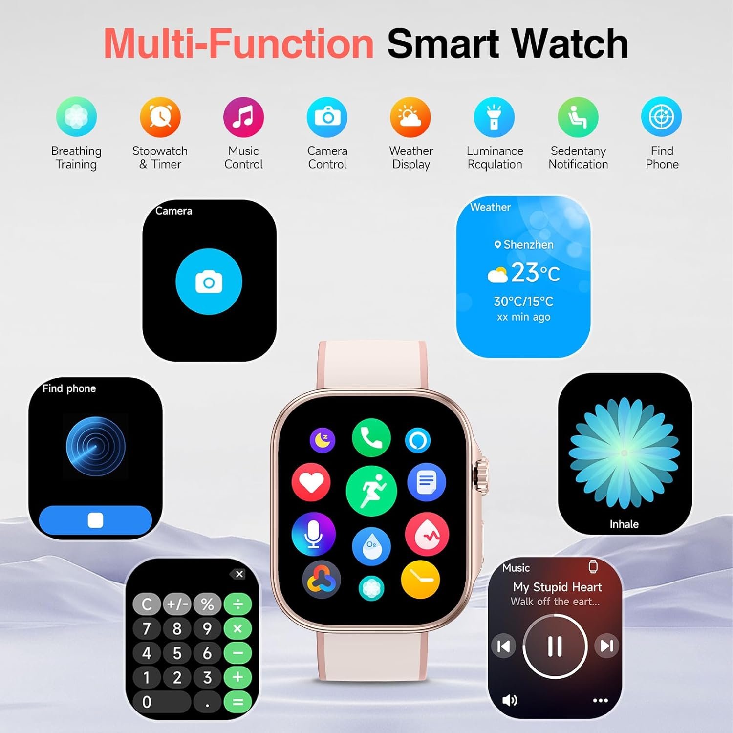 【AMOLED Display & 200+ Cloud and DIY Faces】 The smartwatch features a 1.99-inch touchscreen with a brightness of up to 600 nits, ensuring a crisp, clear display even under direct sunlight for effortless navigation. With over 200+ unique watch faces available, including dynamic options, you can also set any image from your phone as the wallpaper to showcase your personal style.