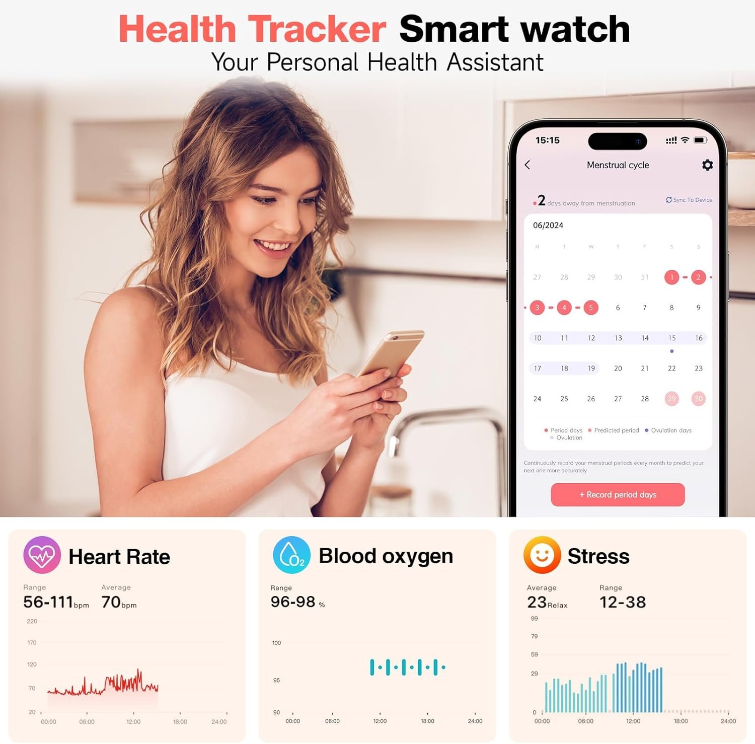 【24/7 Health Accurate Monitoring】Take control of your health with smartwatches for your that provide continuous tracking of key metrics. These smartwatches monitor your heart rate, blood oxygen levels (SpO2), and sleep patterns (including deep sleep, light sleep, and REM stages). By reviewing your sleep data, you can develop healthier sleep habits.