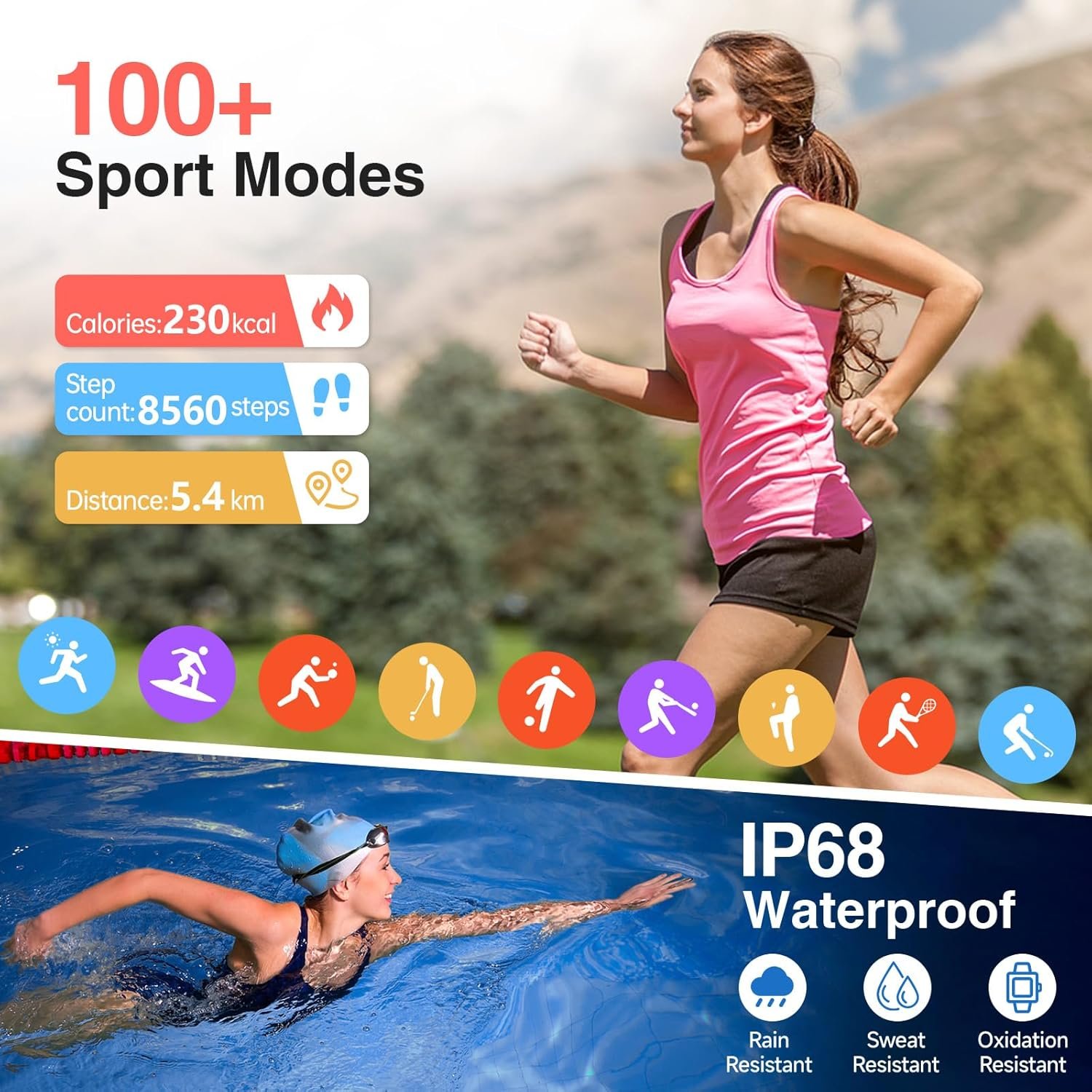 【100+ Sports Modes & 3ATM Water Resistance】Reach your fitness goals with more than 100 sport modes, including snowboarding, running, trail running, cycling, swimming, and more, designed to match your workout. These smartwatches for men track calories burned, steps taken, training duration, and distance across various activities.